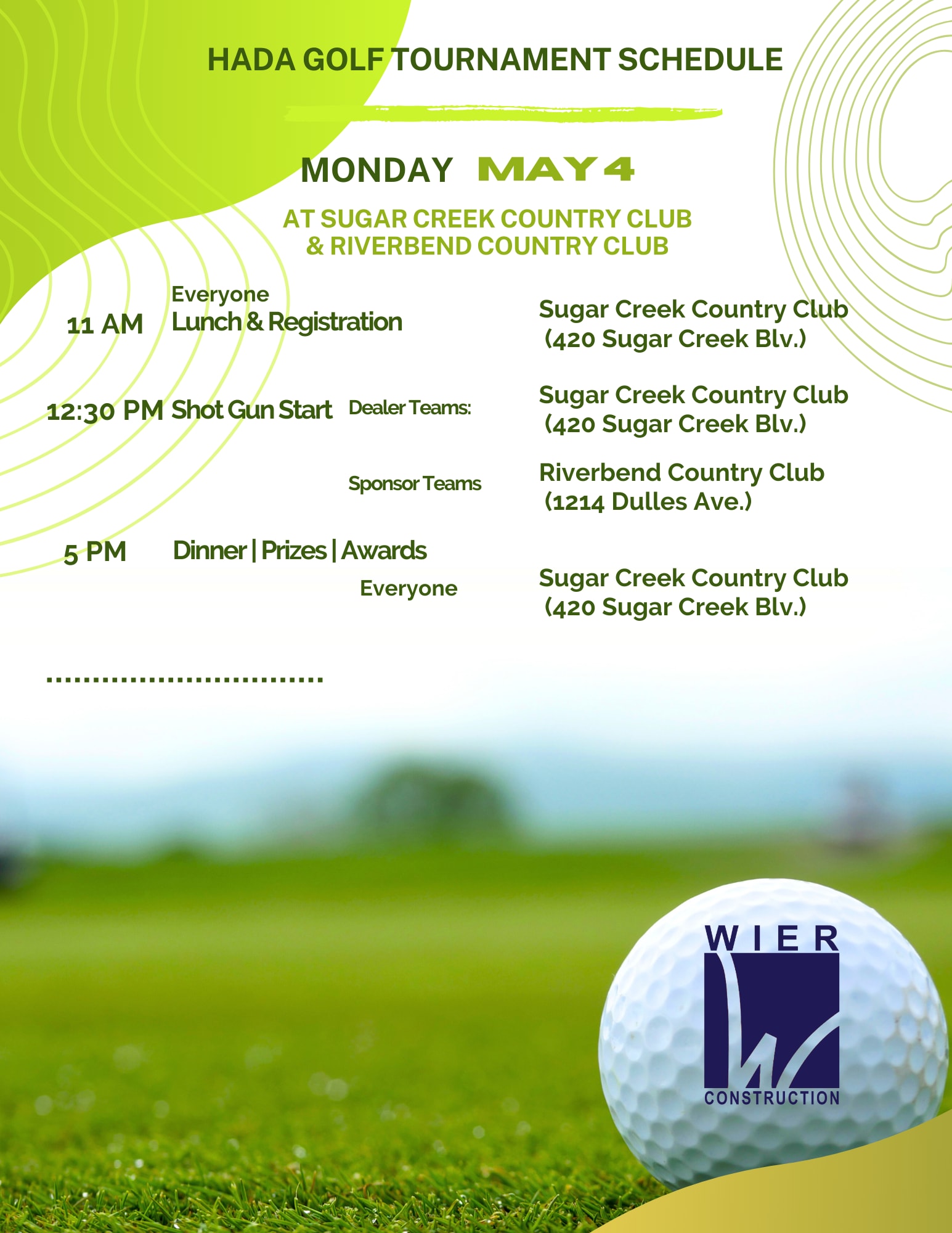 📍 Location: Sugar Creek & Riverbend Country Clubs